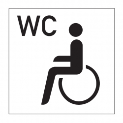 Dieses Hinweisschild für ein WC speziell für Rollstuhlfahrer / Behinderte ist in verschiedenen Materialien und Größen erhältlich. Auf weißem Hintergrund sind das Piktorgramm für Rollstuhlfahrer und die Buchstaben WC zu erkennen. Dieses Schild kann direkt neben dem Eingang zur Behinderten-Toilette angebracht werden. Behinderten-Toiletten bzw. Toiletten für Rollstuhlfahrer sind behinderten- und rollstuhlgerecht eingerichtet.