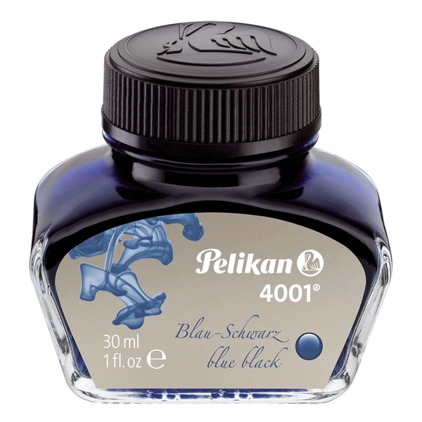Tinte Pelikan 4001. Für traditionelle Pelikan-Füllhalter und viele andere Füllhalter mit Kolbenmechanik bzw. Converter. Tinte Pelikan 4001 ist optimal auf Pelikan-Füllhalter abgestimmt und garantieren eine sichere Funktion. Glas mit 30 ml Inhalt. Tintenfarbe: blau-schwarz.