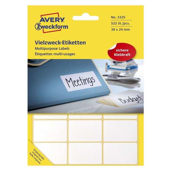 Avery Zweckform® 3325 Mini-Organisations-Etiketten, 38 x 24 mm, 29 Blatt/522 Etiketten, weiß