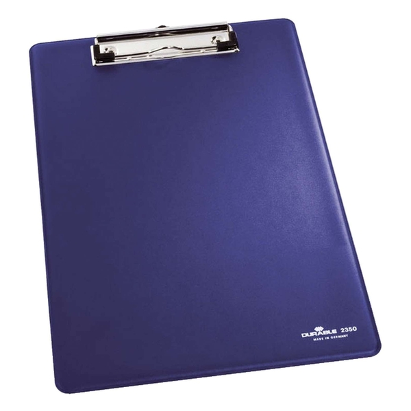 DURABLE BLOCKKLEMME, dunkelblau. Für Format DIN A4. Mit starker, rutschhemmender Federklemme, Tasche für Blockrücken und herausziehbarer Aufhängeöse.