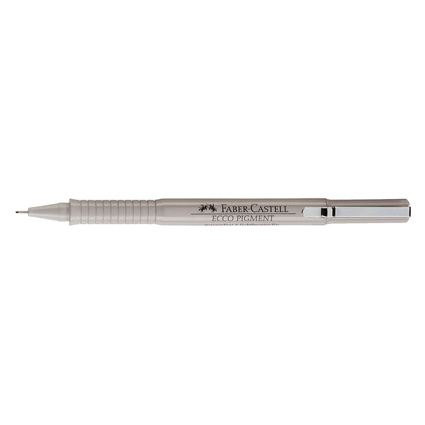 Tintenschreiber ECCO-PIGMENT. Zum Zeichnen, Skizzieren und Schreiben. Lange metallgefasste Faserspitze für Lineale und Schablonen. Metallclip. Schwarze pigmentierte Tinte, besonders wasserfest und lichtbeständig. Linienbreite: 0,7 mm geeignet für Schablone. Farbe des Schaftes: grau.