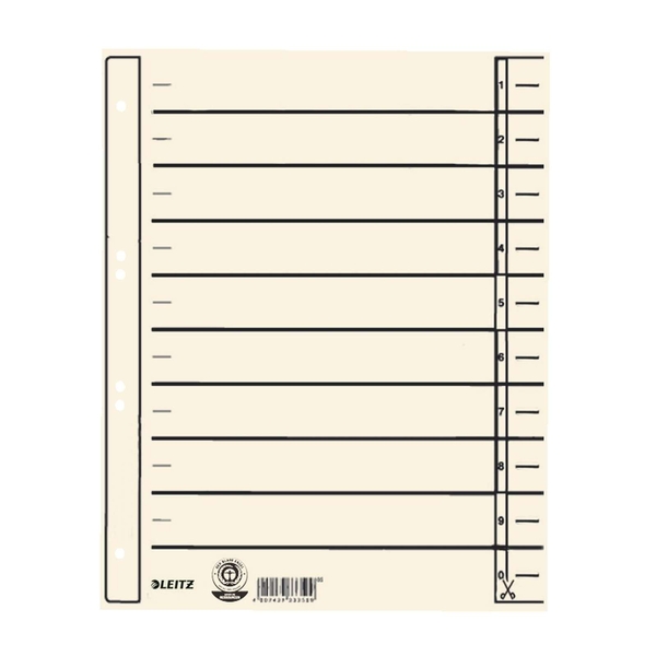 Leitz 1657 Trennblätter - Lochung hinterklebt, Überbreite, A4, chamois, 100 Stück
