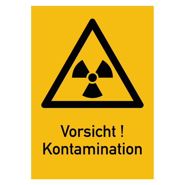 Das Warnzeichen "Vorsicht! Kontamination" erhalten Sie hier in verschiedenen Größen und Materialien. Das gelbe Kombischild beinhaltet in schwarz das gelbe Zeichen für radioaktive Stoffe und ionisierenden Strahlen sowie den Zusatztext "Vorsicht! Kontamination". Die Materialien sind licht- und witterungsbeständig und somit für den Innen- und Außenbereich bestens geeignet. Das Warnschild ist ein Sicherheitszeichen, um vor Gefahren zu warnen, Unfälle zu vermeiden und die Gesundheit zu schützen.