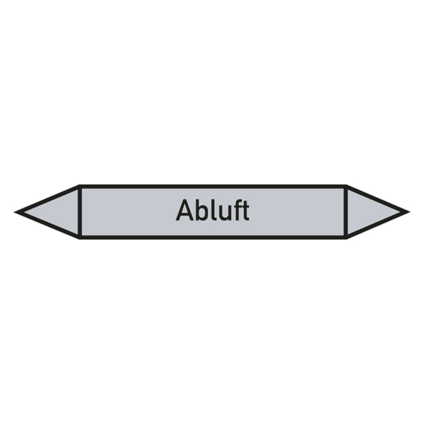 Die Rohrleitungskennzeichnung mit der Aufschrift "Abluft" besteht aus selbstklebender Folie und ist in verschiedenen Größen erhältlich. Das Etikett ist Grau und mit einem schwarzen Rand versehen. Rechts und links befindet sich eine Pfeilspitze. Die Aufkleber sind von -20 °C bis +80 °C temperaturbeständig. Rohrleitungskennzeichnungsetiketten werden für die fachgerechte Kennzeichnung von Rohren in Handwerk und Industrie sowie im Rohrleitungs- und Apparatebau eingesetzt. Die Kennzeichnung von Rohrleitungen mit dem Durchflussstoff dient der Sicherheit, der sachgerechten Instandsetzung und der wirksamen Brandbekämpfung. Die Kennzeichnungsetiketten weisen auf mögliche Gefahren hin, um Unfälle und gesundheitliche Schäden zu vermeiden.