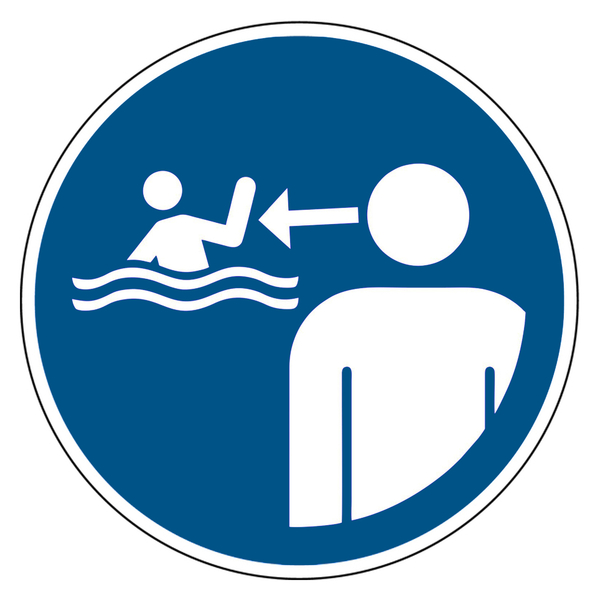 Auf dem Gebotsschild befindet sich auf blauem Untergrund das Piktogramm Kinder in Wassereinrichtungen beaufsichtigen. Das Gebotzeichen eignet sich für die Kennzeichnung von gestatteten Handlungen oder Tätigkeiten. Die Gebotsschilder weisen darauf hin, dass Kinder in Bereichen mit Wasser, wie Schwimmbädern, Planschbecken oder Teichen, ständig durch eine Aufsichtsperson beobachtet werden müssen, um Unfälle oder Ertrinken zu verhindern.