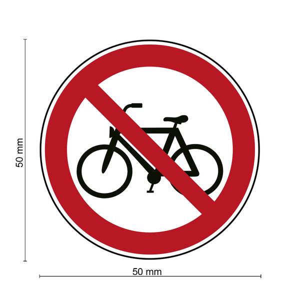 Auf dem Verbotsschild befindet sich auf weißem Untergrund ein Fahrrad und ein dicker roter Rand sowie ein Querbalken. Das Verboten Schild eignet sich für die Kennzeichnung von nicht gestatteten Handlungen oder Tätigkeiten. Die Verbotszeichen weisen darauf hin, dass in dem gekennzeichneten Bereich das Fahrradfahren verboten ist.
