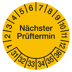 Prüfplaketten gelb Ø 30 mm "Nächster Prüftermin" 2031 - 2036 Folie selbstklebend 500 Stück in Spenderbox