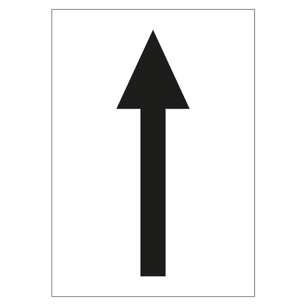 Auf weißem Untergrund ist in der Mitte das Piktogramm für Oben (Ein Pfeil) in der Farbe Schwarz aufgedruckt.