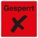 Auf rotem Untergrund ist der Text Gesperrt und ein Kreuz in der Farbe Schwarz aufgedruckt.