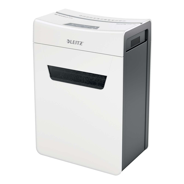 Leitz Aktenvernichter IQ Protect Premium 6M P5. Elektrischer Aktenvernichter mit manuellem Papiereinzug für Home Office oder kleine Büros mit 1-2 Benutzern. Mit Touch Control. Mit Anti-Papierstau-Technologie für kontinuierliches Schreddern. Mit Autoreverse und Auto Start/Stop. Eine LED-Anzeige signalisiert, wenn der Aktenvernichter zum Abkühlen anhalten muss. Sehr leiser Betrieb. Einfach zu leerender, herausziehbarer Abfallbehälter mit Sichtfenster. Schnittgut: Papier, Heft- und Büroklammern. Dauerbetrieb: 10 Minuten. Sicherheitsstufe: Mikro-Partikelschnitt P-5. Blattkapazität: bis zu 6 Blatt (80 g/qm) bzw. bis zu 7 Blatt (70 g/qm) bis zu 2000 Papierschnipsel. Partikelgröße: 2 x 15 mm. Abfallbehälter Auffangvolumen: 18 Liter / 175 Blatt. Schnittgeschwindigkeit: 50 mm/Sekunde für A4/80 g/qm. Maximale Eingabebreite: 220 mm. Leistungsaufnahme: 300 Watt. Geräuschpegel: ca. 55 DbA. Gewicht: 4,8 kg. Format: 335 x 489 x 218 mm. Farbe: weiß.