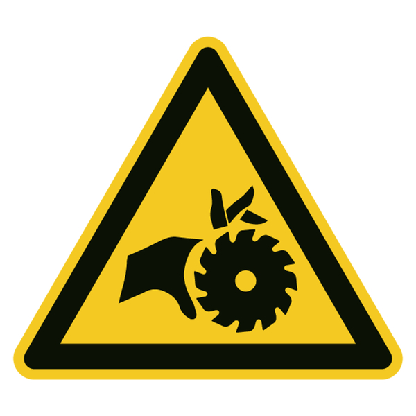 Das Warnzeichen Warnung vor Gefahr durch rotierendes Sägeblatt ist in verschiedenen Größen und Materialien erhältlich.