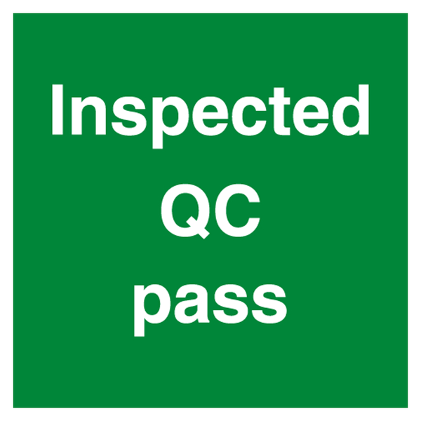 Das Qualitätskennzeichen Inspected QC pass ist in verschiedenen Größen und Materialien erhältlich.