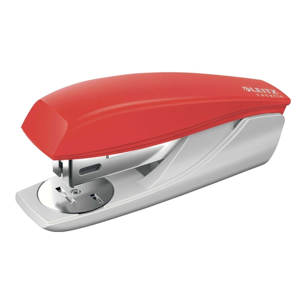 Leitz Heftgerät NeXXt Recycle. Hergestellt aus 96% recyceltem Kunststoff, 100% wiederverwertbar, da es mit Hilfe eines Schraubendreher vollständig in die verschiedenen Materialtypen zerlegt werden kann. Mit Oberlademechanik. Für offene und geschlossene Heftung, Mit Tackerfunktion. Mit Drehamboss und integriertem Entklammerer. Mit Direct Impact Technology (DIT) für perfektes und problemloses Heften. Inklusive 200 Heftklammern P3 24/6. Kunststofffreie Verpackung aus 100% recyceltem Karton, vollständig wiederverwertbar. Heftleistung: 2,5 mm/25 Blatt. Heftklammern: 80 x P3, 24/6 oder 110 x P3, 26/6. Einlegetiefe: 35 mm. Material: 96% recycelter Kunststoff, Metall. GS-geprüft. Farbe: rot.