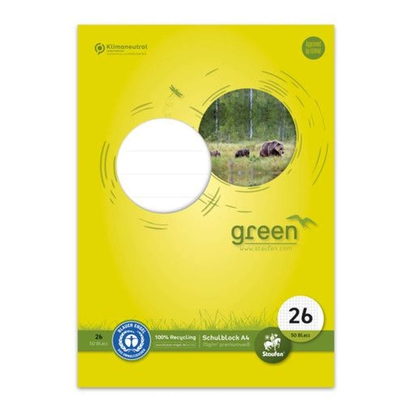 STAUFEN GREEN Schulblock LIN 26 - A4, 50 Blatt, 70 g/qm, 5mm kariert mit Rand