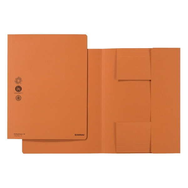 Aus 100 % Recyclingkarton 250 g/qm. Mit 3 Klappen und Falzungen zur Einstellung der Inhaltsmenge. Für Format A4. Ausgezeichnet mit dem „österreichischen Umweltzeichen“ und dem „Blauen Engel“. Format A4, Größe BxH: 24,5 x 32,0 cm. Farbe: orange