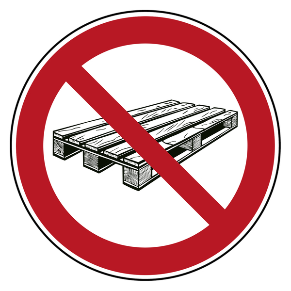 Auf dem Verbotszeichen befindet sich auf weißem Untergrund das Piktogramm Paletten abstellen verboten und ein dicker roter Rand sowie ein Querbalken. Das Verbotsschild eignet sich für die Kennzeichnung von nicht gestatteten Handlungen oder Tätigkeiten. Die Bodenschilder weisen darauf hin, dass in dem gekennzeichneten Bereich das Abstellen von Paletten verboten ist.