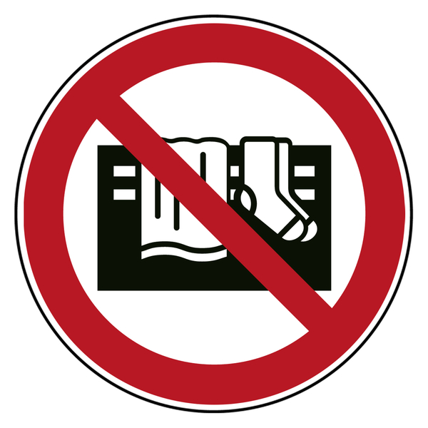 Auf dem Verbotsschild befindet sich auf weißem Untergrund das Piktogramm Gerät nicht abdecken und ein dicker roter Rand sowie ein Querbalken. Das Verboten Schild eignet sich für die Kennzeichnung von nicht gestatteten Handlungen oder Tätigkeiten. Die Verbotszeichen weisen darauf hin, dass das Gerät nicht abgedeckt werden darf.