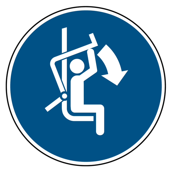 Gebotszeichen Sicherheitsbügel des Sessellifts schließen DIN EN ISO 7010 M033