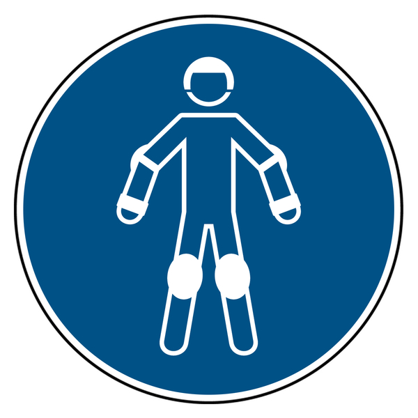 Auf dem Gebotsschild befindet sich auf blauem Untergrund das Piktogramm Schutzausrüstung für Rollsport benutzen. Das Gebotzeichen eignet sich für die Kennzeichnung von gestatteten Handlungen oder Tätigkeiten. Die Gebotsschilder weisen darauf hin, dass beim Ausüben von Rollsportarten eine geeignete Schutzausrüstung getragen werden soll.