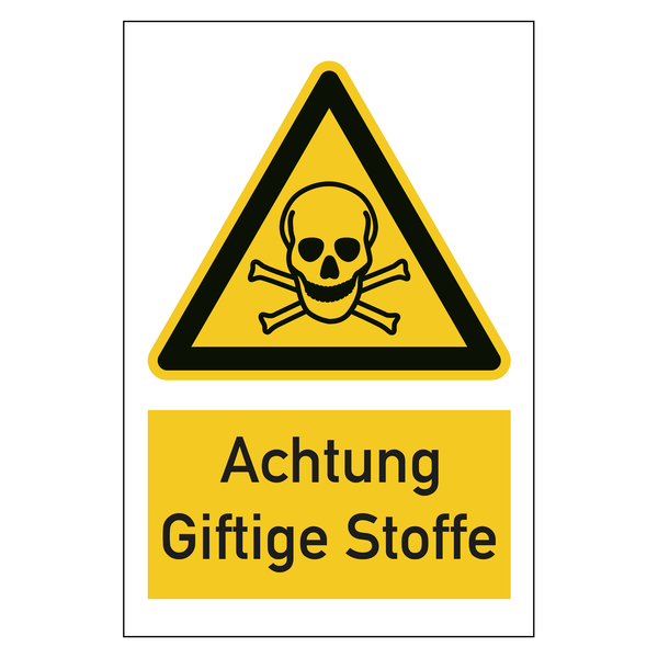 Das Warnzeichen Achtung giftige Stoffe ist in verschiedenen Größen und Materialien erhältlich.
