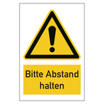 Das Warnzeichen Bitte Abstand halten ist in verschiedenen Größen und Materialien erhältlich.