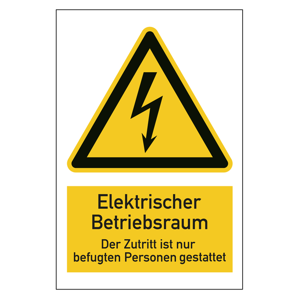 Warnzeichen Elektrischer Betriebsraum Der Zutritt ist nur befugten Personen gestattet Kombischild