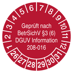 Prüfplaketten Geprüft nach BetrSichV §3 (6) DGUV Information 208-016 Rot