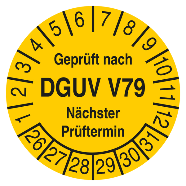 Prüfplakette Geprüft nach DGUV V79 Nächster Prüftermin Gelb