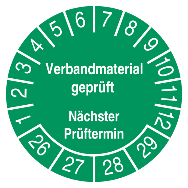 Prüfplakette Verbandmaterial geprüft Nächster Prüftermin Grün