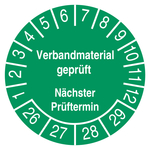 Prüfetiketten Verbandmaterial geprüft Nächster Prüftermin Grün
