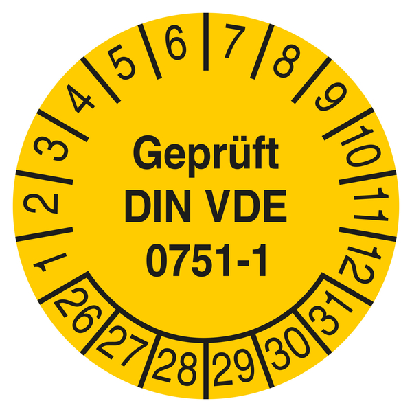 Prüfplakette Geprüft DIN VDE 0751-1 Gelb