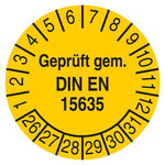 Prüfetiketten Geprüft gem. DIN EN 15635 Gelb