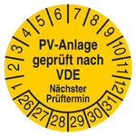 Prüfetiketten PV-Anlage geprüft nach VDE Nächster Prüftermin Gelb