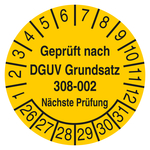 Prüfetiketten Geprüft nach DGUV Grundsatz 308-002 Nächste Prüfung Gelb