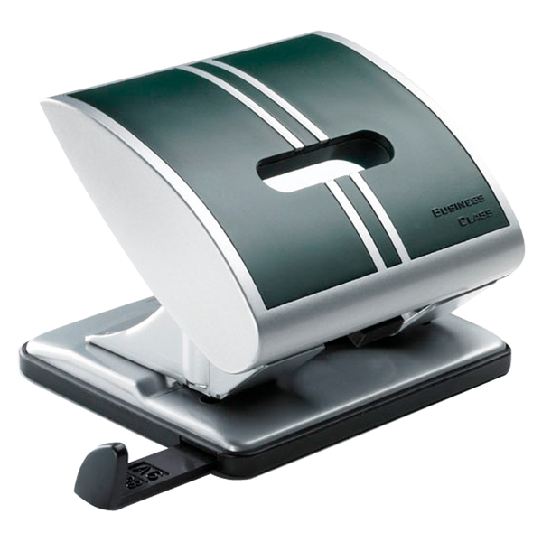 Der Tisch-Locher ist mit einer stabilen Metallkonstruktion versehen und besitzt einen hochwertigen Kunststoffgriff. Der Locher hat eine Lochleistung von 2,5 mm und einen Lochabstand von 8 cm. Natürlich ist der Locher mit einer Anschlagschiene versehen. In einer moderner werdenden Arbeitswelt steigen die Ansprüche an einen optisch ansprechenden und funktionell gestalteten Arbeitsplatz. Die Serie Business Class ist eine perfekte Kombination aus Qualität und elegantem Stil. Klare Linien, hochwertige Materialien und aufwändige Verarbeitung verleihen den Modellen der Business Class das luxeriöse Aussehen. Unverwechselbar wird die Serie durch die spezielle Linienführung und die einzigartige Kombination aus Silber mit anderen edlen Farbtönen.