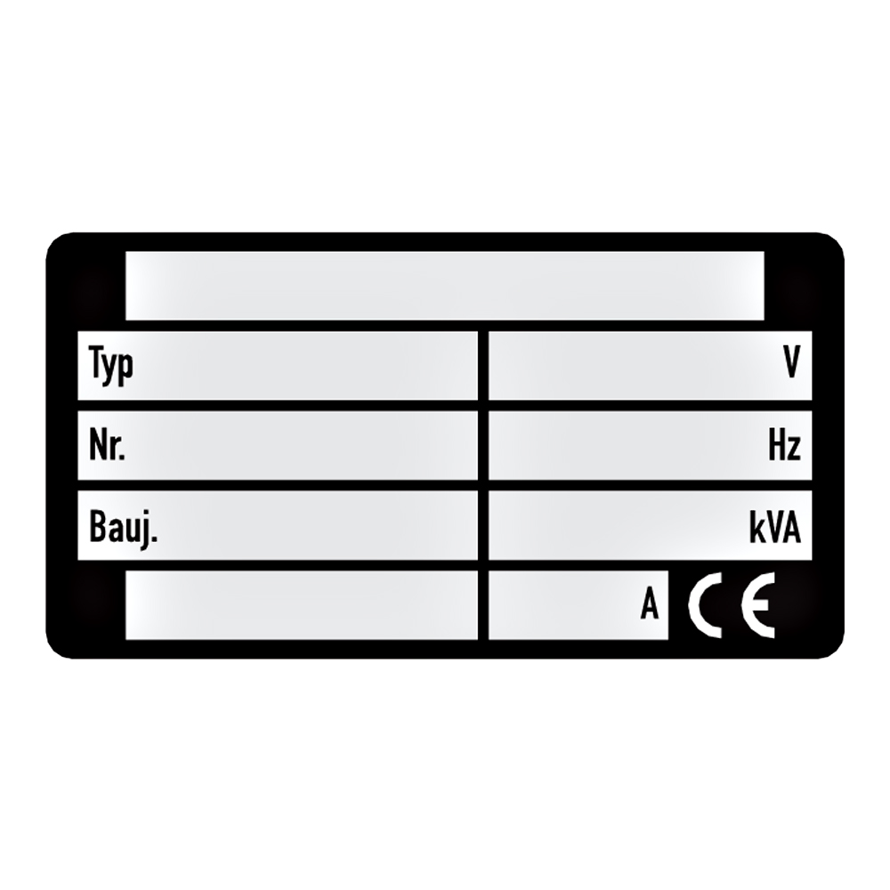 Material ausgewählt, Pflichtangaben bekannt – jetzt fehlt nur noch das passende Typenschild. Bei Aufkleber.org finden Sie das passende Schild für Ihren Anwendungsfall.
